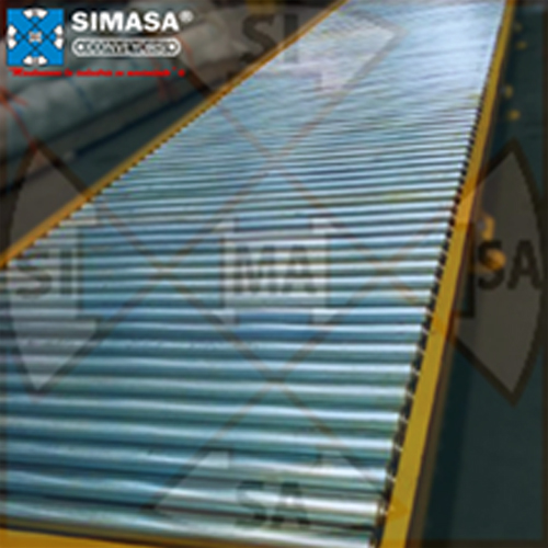Su funcionamiento se basa en una serie de rodillos metálicos que permiten el desplazamiento suave y eficiente de diferentes tipos de productos a lo largo de la