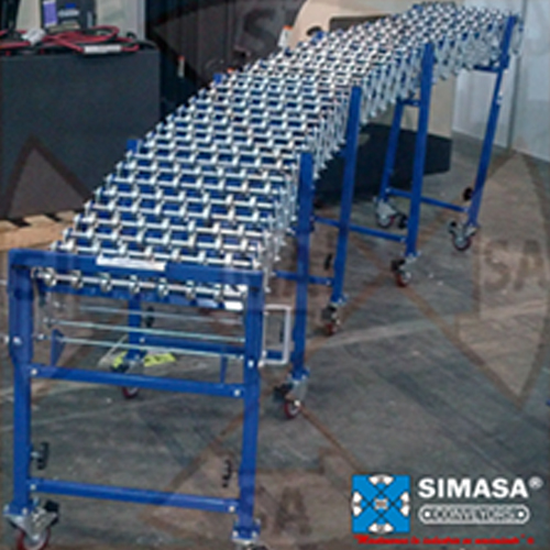 Su principal característica es su estructura flexible y extensible, que permite adaptarlo fácilmente a diferentes espacios de trabajo. Puede expandirse, contraerse o curvarse, facilitando la conexión entre áreas de carga, descarga, empaque o distribución sin necesidad de instalaciones fijas.
