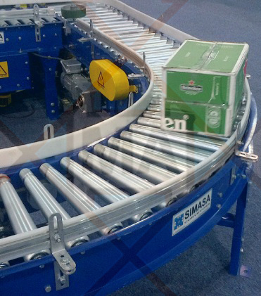 En este tipo de sistemas, los rodillos son accionados por medio de una banda tipo "v" y poleas de aluminio. Ideal para el manejo de paquetes, cajas y charolas, en procesos de selección, ensamble, distribución y almacenamiento. Es silencioso y muy eficiente.