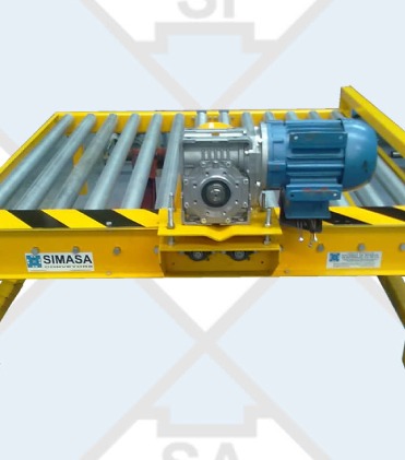 En este tipo de transportadores los rodillos son accionados por medio de una cadena y catarinas que transmite el movimiento de rodillo a rodillo. Ideales para el manejo de objetos pesados: cajas, contenedores, llantas, sacos, tambos, tarimas, etc. Utilizados en procesos de la industria alimenticia, farmacéutica, refresquera, manufacturera y sistemas de logística, por su gran resistencia y capacidad de carga; además de proporcionar una superficie de transporte suave y de bajo coeficiente de fricción.